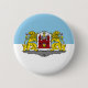 Round Button with design with flag of Riga, capital city of Latvia; white and blue flag with coats of arms with two golden lions holding a shield in the centre