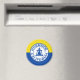 Magnet with the flag of Riverside, California. A yellow and blue flag with the seal of the city in the centre