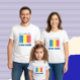Isolated pixelated flag of Romania with text: Blue. Yellow. Red. Forever Romanian