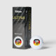 Golf balls with flag of Saarland; design with horizontal tricolor of black, red and yellow (golden), with state’s coat of arms in the centre