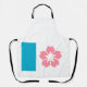 Apron with a design with the flag of Salem, Oregon. A white and blue flag with a pink cherry blosson