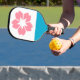 Pickleball Paddle with a design with the flag of Salem, Oregon. A white and blue flag with a pink cherry blosson