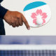 Ping Pong Paddle with a design with the flag of Salem, Oregon. A white and blue flag with a pink cherry blosson