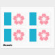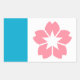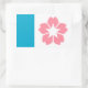 Sticker with a design with the flag of Salem, Oregon. A white and blue flag with a pink cherry blosson