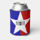 Can Cooler with the flag of San Antonio, Texas. A blue and red flag with white star and an illustration of Alamo in the middle