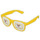 Sunglasses with flag of city of San Francisco, California; white flag with yellow border with an illustration of a phoenix rising from flames
