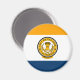Magnet with the flag of San Jose, California. A blue, white, and orange flag with the seal of the city in the centre