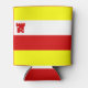 Can Cooler with flag of city of Santa Barbara, California; flag with vertical tricolor of white, red and yellow, with illustration of a red fort in the upper left corner