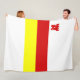 Fleece Blanket with flag of city of Santa Barbara, California; flag with vertical tricolor of white, red and yellow, with illustration of a red fort in the upper left corner