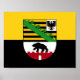 Poster with variant flag of North-Rhine Westphalia (Nordrhein-Westfalens), design with horizontal tricolor of green, white and red; with a shield with illustration of river and horse in the center