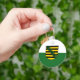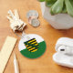 Button Keychain with variant flag of Saxony; design with two horizontal bands of green and white, and with state’s coat of arms in the centre
