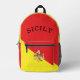 Carry your essentials in style with this Flag of Sicily Sicilian Printed Backpack. Featuring the bold red and yellow Sicilian flag with the iconic Trinacria emblem, this backpack makes a striking statement while celebrating your Sicilian pride. The word “Sicily” can also be customized to say “Sicilia” for a more authentic touch. Spacious and durable, it’s perfect for school, travel, or everyday use. A functional and eye-catching accessory that blends practicality with heritage-inspired design.