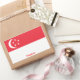 The national flag of Singapore was first adopted in 1959, the year Singapore became self-governing within the British Empire. It was reconfirmed as the national flag when the Republic gained independence on 9 August 1965. The design is a horizontal bicolour of red above white, overlaid in the canton (upper-left quadrant) by a white crescent moon facing a pentagon of five small white five-pointed stars. The elements of the flag denote a young nation on the ascendant, universal brotherhood and equality, and national ideals.