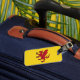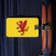 Luggage Tag with design with a flag of historic county of Somerset, in England, Great Britain; yellow flag with an illustration of a red dragon in the centre