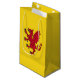 Paper Bag with design with a flag of historic county of Somerset, in England, Great Britain; yellow flag with an illustration of a red dragon in the centre