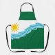 Apronr with a design with the flag of Spokane, Washington. A white and green flag with blue lines symbolising the Spokane river and Spokane Falls and a yellow sun