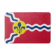 Bath mat with flag of city of St. Louis; red flag with white and blue waves and blue fleur-de-lys in yellow circle