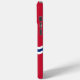 iPhone 14 Case with flag of city of St. Louis; red flag with white and blue waves and blue fleur-de-lys in yellow circle