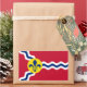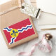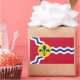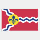 Sticker with flag of city of St. Louis; red flag with white and blue waves and blue fleur-de-lys in yellow circle