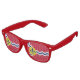 Party Shades with flag of city of St. Louis; red flag with white and blue waves and blue fleur-de-lys in yellow circle
