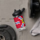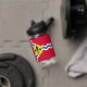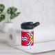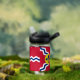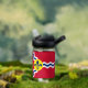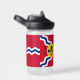 Watter Bottle with flag of city of St. Louis; red flag with white and blue waves and blue fleur-de-lys in yellow circle
