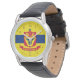 Watch with flag of city of St Paul, Minnesota; flag with three horizontal stripes of blue and yellow with red emblem in the centre