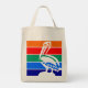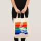 Tote Bag with a design with the flag of St. Petersburg, Florida. A flag with orange, red, green, blue, and navy blue stripes with a symbol of white pelican