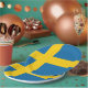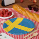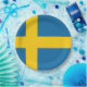 Flag of Sweden: "För Sverige - I tiden" → "Always for Sweden" or "For Sweden, in our time". It is composed of a yellow Scandinavian cross on a beautiful blue background.