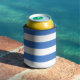 Can Cooler with design with design with flag of Tallinn, capital city of Estonia; white and blue striped flag