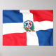 The flag of the Dominican Republic, as described by Article 96 of the Dominican Constitution, features a centred white cross that extends to the edges and divides the flag into four rectangles—the top ones are blue (hoist side) and red, and the bottom ones are red (hoist side) and blue. A large coat of arms featuring a shield with the flag design and supported by a bay laurel branch (left) and a palm frond (right) is at the centre of the cross; above the shield, a blue ribbon displays the national motto: Dios, Patria, Libertad (God, Fatherland, Liberty). Below the shield, the words República Dominicana appear on a red ribbon (this red ribbon is depicted in more recent versions as having its tips pointing upward). In the centre of the shield, flanked by three spears (two of them holding Dominican banners) on each side, is a Bible with a small cross above it and said to be opened to the Gospel of John, either to chapter one or chapter 8, verse 32, which reads Y la verdad nos hará libre (And the truth shall make you free). The blue on the flag stands for liberty, the white for salvation, the red for the blood of heroes. The civil ensign follows the same design, but without the charge in the centre.