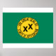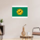 This design features the flag for Jefferson, which is a proposed U.S. state that would span the contiguous, mostly rural area of southern Oregon and northern California, where several attempts to separate the two existing states have taken place. If the proposal were ever approved, Yreka, California, could become the provisional capital city, while Modesto, California, would probably become the state's largest city.