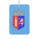 Air Freshener with design with flag of Tirana, capital city of Albania, blue flag with coat of arms