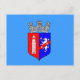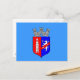 Postcard with design with flag of Tirana, capital city of Albania, blue flag with coat of arms