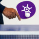 Ping pong paddle with design with flag of Tokyo prefecture, edo purple flag with The Crest of Tokyo metropolis in the centre
