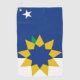 Golf towel with a design with the flag of Topeka, Kansas. A blue and white flag with a yellow star symbol