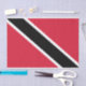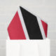 This design features the national flag of Trinidad and Tobago (officially the Republic of Trinidad and Tobago), which is the southernmost island country in the Caribbean. It consists of the main islands Trinidad and Tobago, as well as numerous much smaller islands. Trinidad and Tobago is particularly known for its fossil-fuel wealth. It shares maritime boundaries with Barbados to the northeast, Grenada to the northwest, Guyana to the southeast and Venezuela to the south and west. The capital of Trinidad and Tobago is Port of Spain, while the largest city is San Fernando.