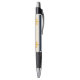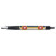 Pen with a design with the flag of Tulsa, Oklahoma. A beige and navy blue flag with a gold Osage shield containing a red circle and a beige six-pointed star