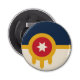 Bottle Opener with a design with the flag of Tulsa, Oklahoma. A beige and navy blue flag with a gold Osage shield containing a red circle and a beige six-pointed star