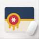 Mousepad with a design with the flag of Tulsa, Oklahoma. A beige and navy blue flag with a gold Osage shield containing a red circle and a beige six-pointed star