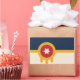 Sticker with a design with the flag of Tulsa, Oklahoma. A beige and navy blue flag with a gold Osage shield containing a red circle and a beige six-pointed star