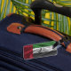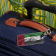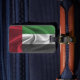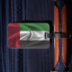 Luggage tag with the flag of UAE in wavy fabric style design. This design features the United Arab Emirates flag colours and design with a beautiful waving material textured effect. This flag design is a great way to show you are proud to be from UAE.