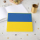 The flag of Ukraine is a banner of two equally sized horizontal bands of blue and yellow. The top represents sky and the yellow represents wheat.