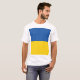 The flag of Ukraine is a banner of two equally sized horizontal bands of blue and yellow. The top represents sky and the yellow represents wheat.