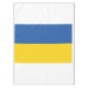 The flag of Ukraine is a banner of two equally sized horizontal bands of blue and yellow. The top represents sky and the yellow represents wheat.