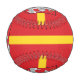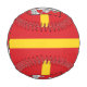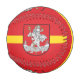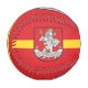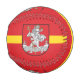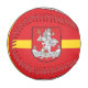 Baseball with design with flag of Vilnius, capital city of Lithuania; red flag with yellow stripe and coats of arms with two golden lions holding a shield in the centre
