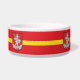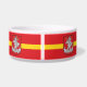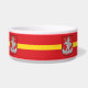 Pet Bowl with design with flag of Vilnius, capital city of Lithuania; red flag with yellow stripe and coats of arms with two golden lions holding a shield in the centre