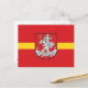 Postcard with design with design with flag of Vilnius, capital city of Lithuania; red flag with yellow stripe and coats of arms with two golden lions holding a shield in the centre