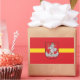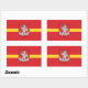 Sticker with design with design with flag of Vilnius, capital city of Lithuania; red flag with yellow stripe and coats of arms with two golden lions holding a shield in the centre