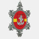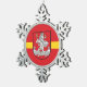 Snowflake Ornament Flag with design with flag of Vilnius, capital city of Lithuania; red flag with yellow stripe and coats of arms with two golden lions holding a shield in the centre