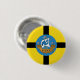 Button with a design with the flag of Wellington City, New Zealand. A yellow flag with a black cross and the seal of the city with an image of a ship in the centre